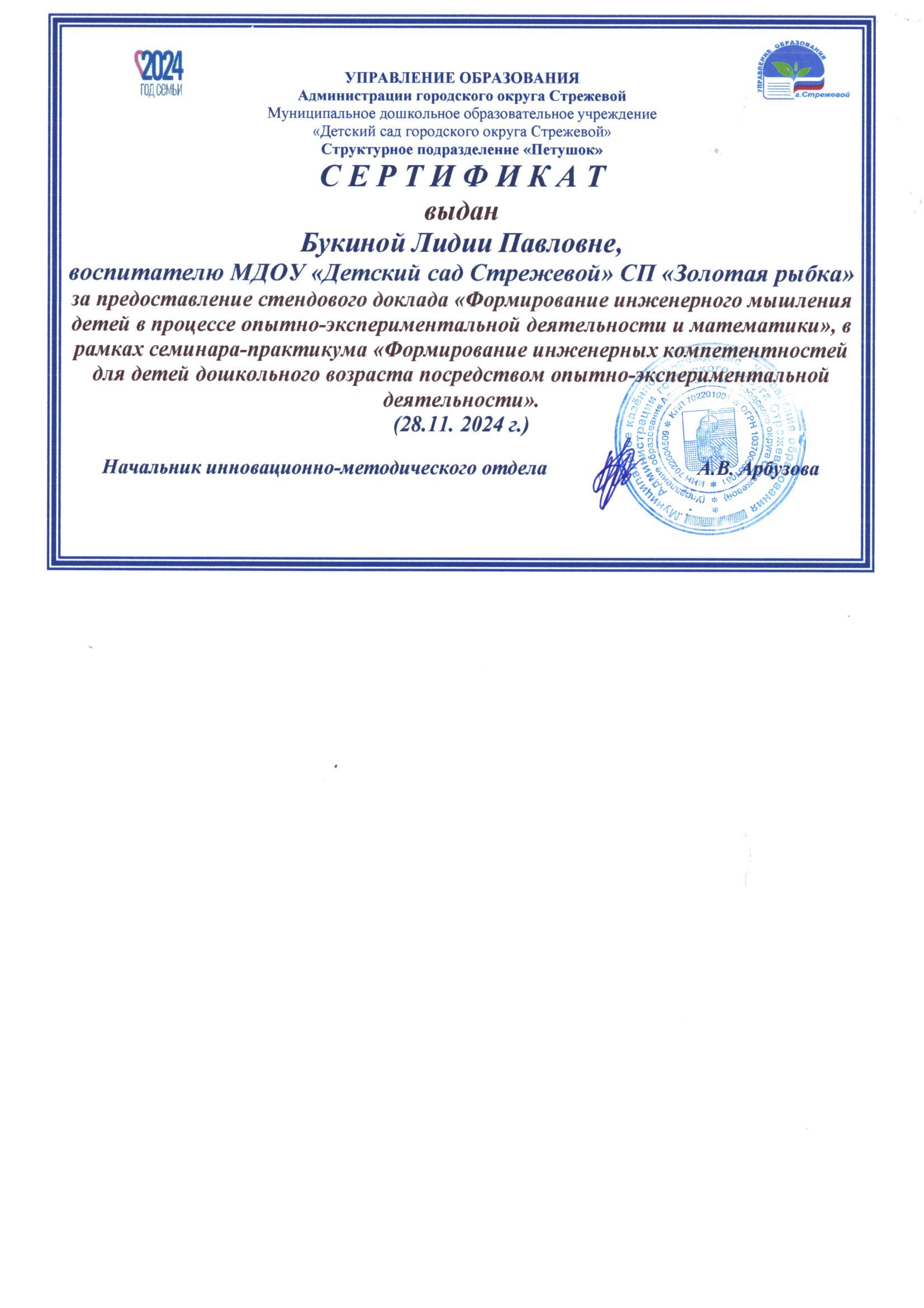 Сертификат Стендовый доклад Формирование инженерного мышления, 28.11.2024